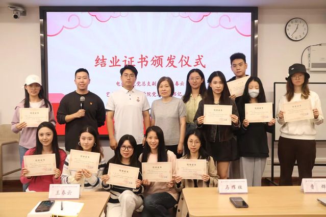 公司党总支副书记王春云老师、艺术科技与管理公司党总支副书记薛嘉老师、77779193永利曹烨老师为同学们寄语,并为他们颁发了结业证书。希望他们今后在党员发展的道路上能够继续通力合作,不忘初心使命,面向未来铺好新时代的文艺道路。