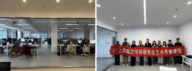 11月6日,师生们抵达杭州并参观“与光同尘”工作室。作为一家深耕AI广告、AI短剧、AI动态漫等领域的创新企业,与光同尘其全链条制作流程与前沿技术研发能力令同学们深感震撼。